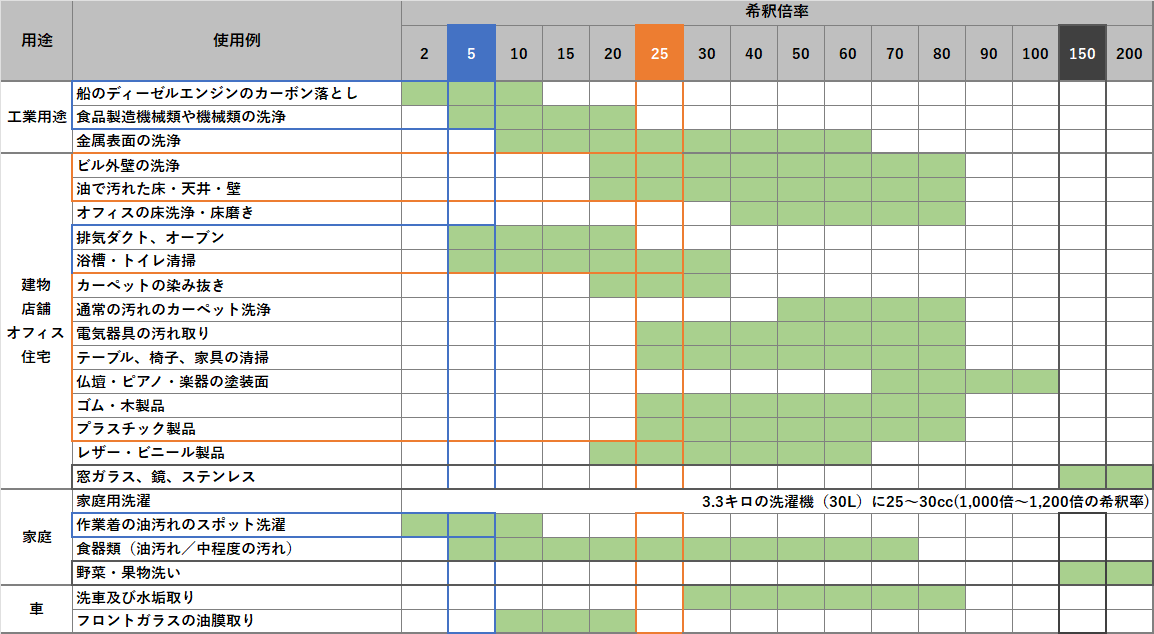 また、一般用途で使い易いように、原液の5倍、25倍、150倍に簡単に薄められる容器も用意しております。